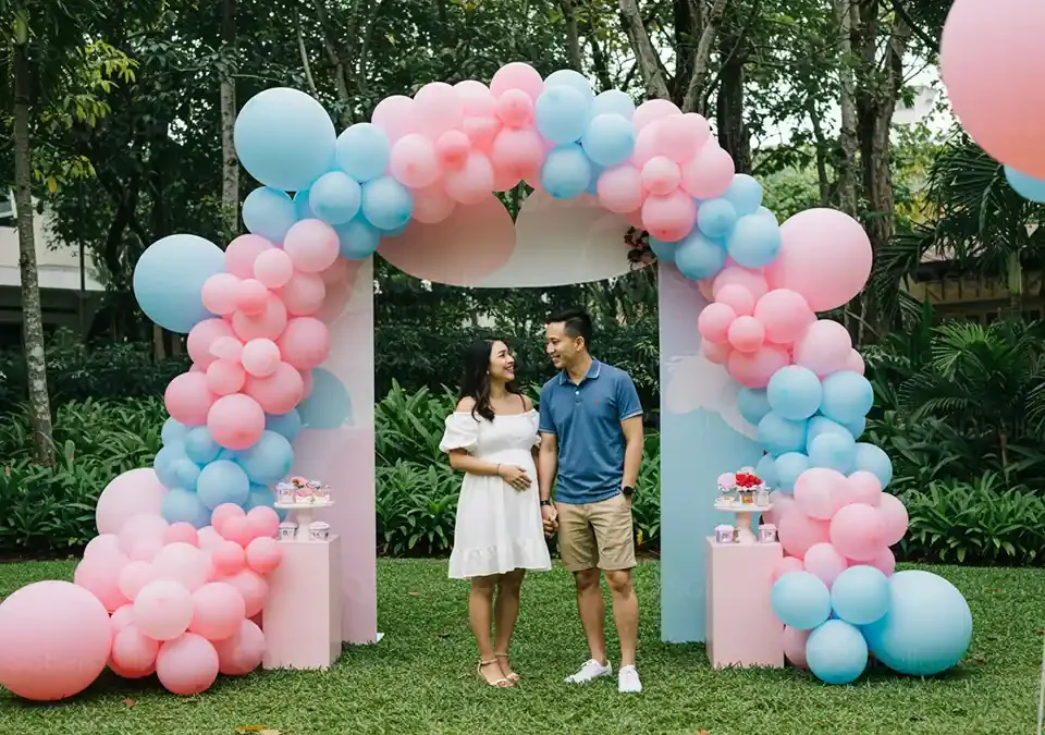 ภาพบรรยากาศจริงจากงาน Gender Reveal ที่เต็มไปด้วยความตื่นเต้นและเซอร์ไพรส์ ให้ลูกโป่งเป็นตัวช่วยเฉลยเพศลูกอย่างน่าจดจำ ไม่ว่าคุณจะอยากจัดงานแบบอบอุ่นหรืออลังการ